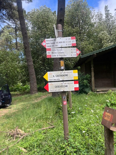 Curiosità: il cammino della GTE fu disegnato per la prima volta da Renato Giombini e Mario Ferrari negli anni '80. Nel tempo è divenuta un classico dell’escursionismo internazionale per le sue caratteristiche tecniche e le sue valenze paesaggistiche, naturali e culturali. La motivazione del doppio arrivo Pomonte / Patresi, risiede nel fatto che all'epoca nel primo paese vi era il capolinea dell'autobus ed il secondo era sede dell'unico albergo aperto tutto l'anno.
